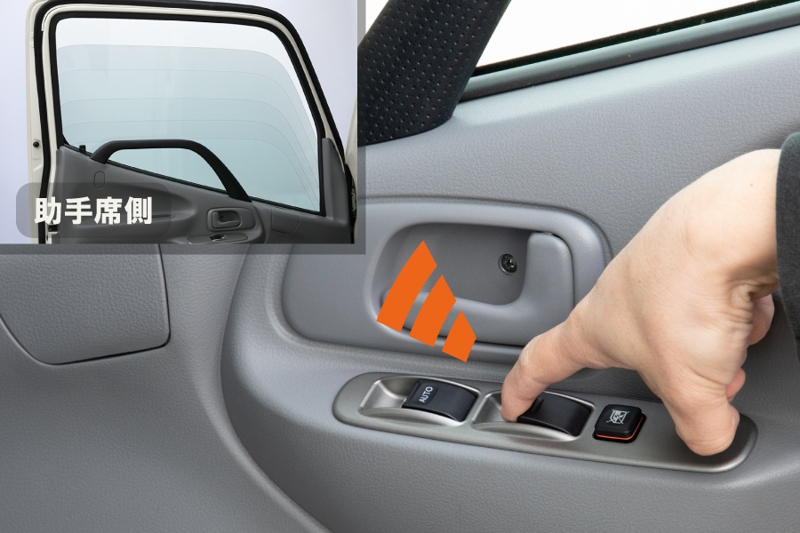 助手席にはオートウインドウ機能がなく、操作時はスイッチを押し続ける必要がありまが、本製品を装着すれば、助手席でもワンタッチで全開・全閉が可能に。