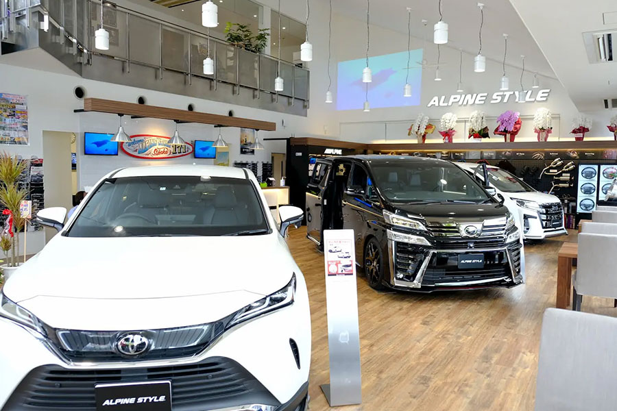 明るく広々とした店内では、実車や各種パーツをご覧いただけます。 他では見ることのできない展示車両に直接触れ、最高のサウンド空間などを体感頂けます。