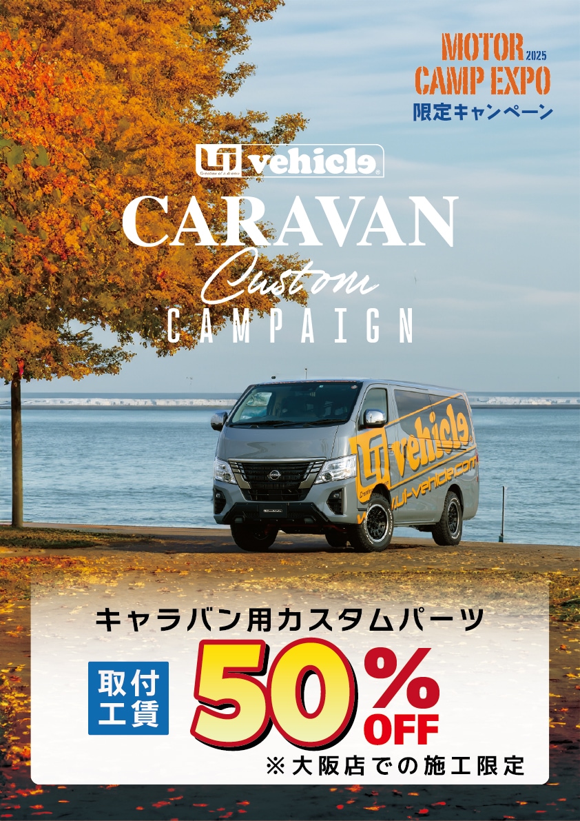 ユーアイビークルからは、注目のNEWカスタムパーツを搭載した キャラバン・デモカーを展示!!